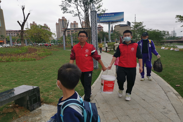 南寧營業(yè)部廣大青年職工聯(lián)合當(dāng)?shù)亍皣鴮W(xué)贏天下”志愿者到康和城肯德基廣場(chǎng)、繡球廣場(chǎng)江濱路沿線社區(qū)街道進(jìn)行大掃除。